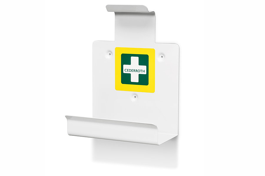 Uchwyt ścienny do apteczek przenośnych Cederroth REF 51000008. Uchwyt pasuje do apteczek walizkowych Cederroth 390103 – XL oraz  Cederroth 390104 – DIN13157. Pozwala na umieszczenie apteczki w stałym miejscu, z którego można ją sprawnie zabierać do innych lokalizacji a następnie odkładać na miejsce po zakończeniu pracy. Dzięki uchwytom każdy pracownik będzie wiedział gdzie znajduje się sprzęt pierwszej pomocy.