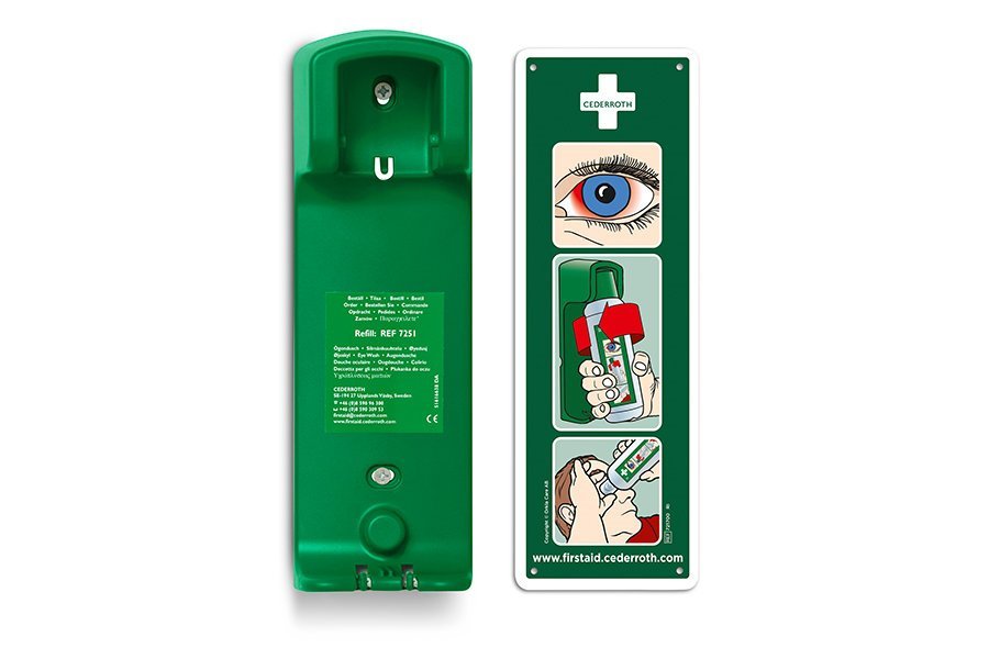 ✅Uchwyt ścienny na płuczki do oczu Cederroth REF 7200 to solidne i praktyczne rozwiązanie do przechowywania płukanek Cederroth o pojemności 500 ml.