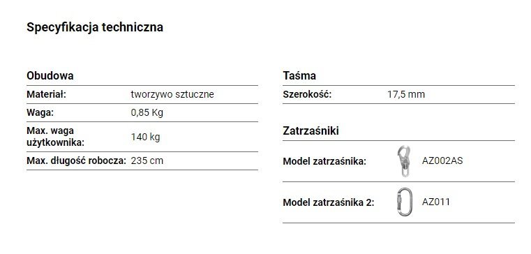 WR 025 – Urządzenie samohamowne do pracy w pionie – z zatrzaśnikami AZ002AS i AZ011